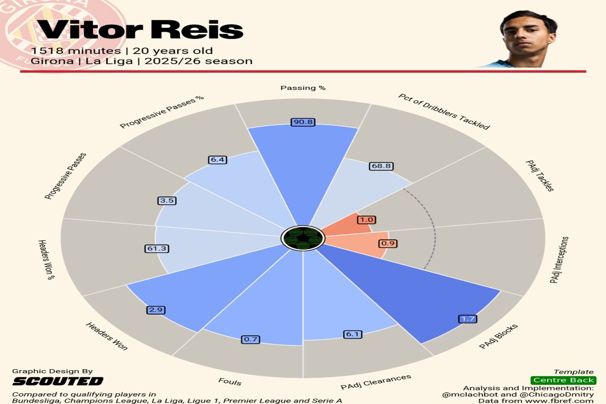 Vitor Reis left Manchester City last summer to spend this season on loan at Girona. The loan move to Spain has been perfect for the young Brazilian defender. Vitor Reis has played regularly for Girona, and he has matured and developed as a player this season. That is exactly what City had hoped for when they sent Vitor Reis out on loan. The young Brazilian centre-back is a prototypical modern-day defender. He reads the game exceptionally well, times his challenges superbly, and is good in possession. All of those attributes make Vitor Reis almost the ideal player to slot into a Pep Guardiola side.